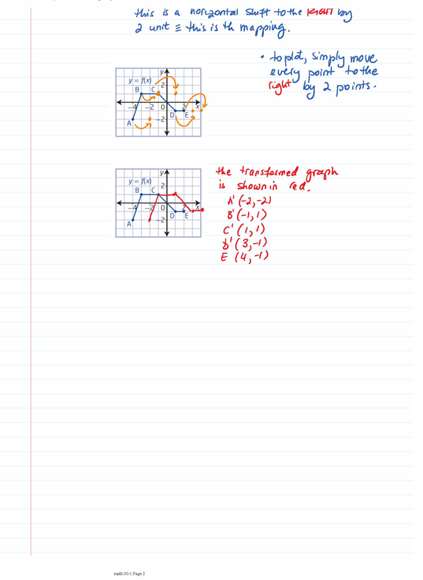 state the coordinates of the image points A', B', C', D' and E', sketch the graph of the transformed function